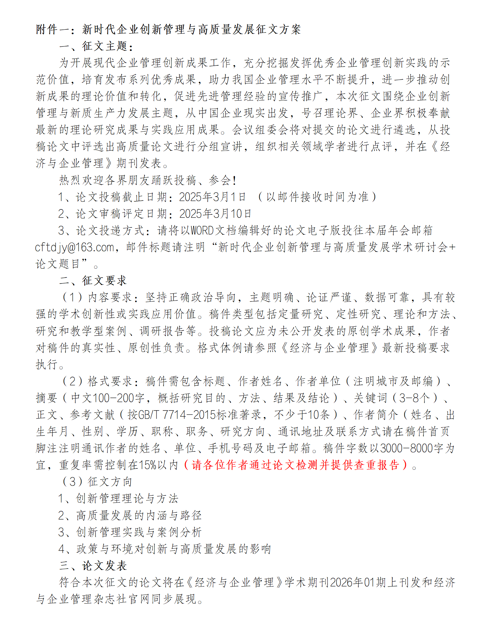 附件一:新时代企业创新管理与高质量发展征文方案